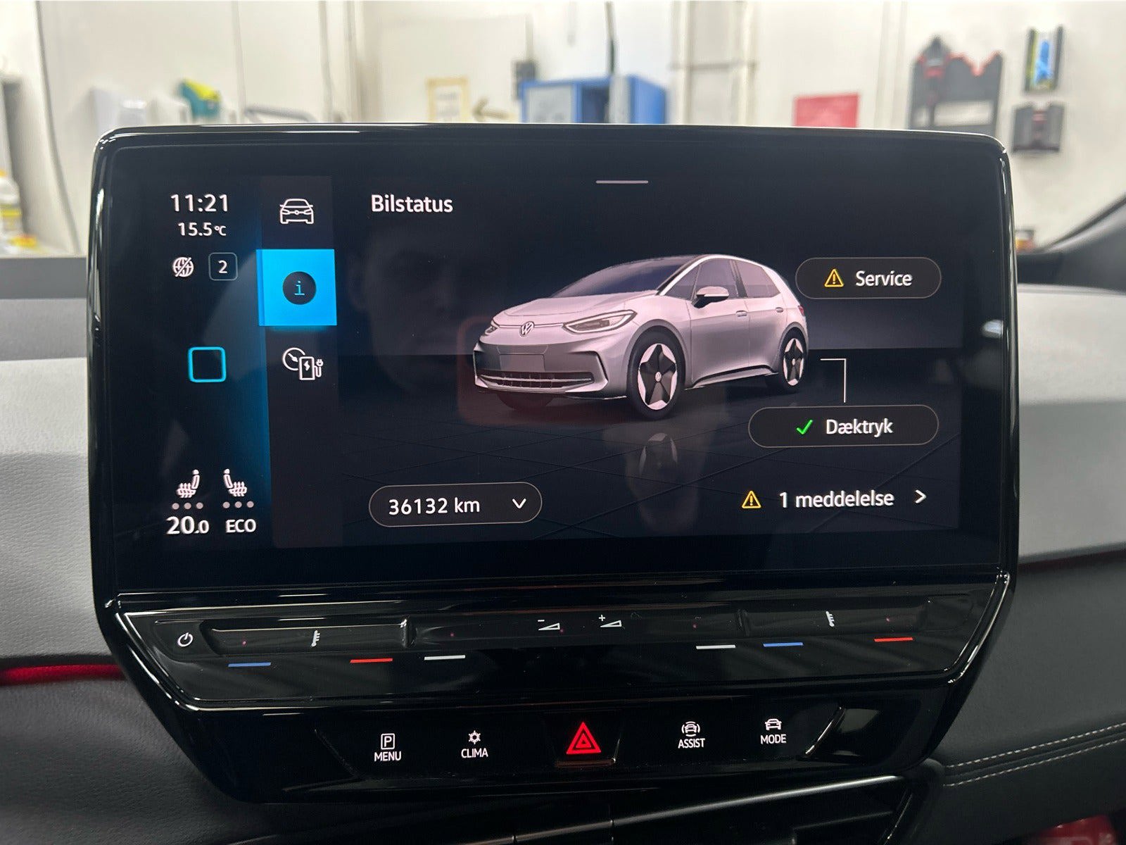 💡 IQ.LIGHT MATRIX LED FORLYGTER 🧠 HEAD-UP DISPLAY MED AUGMENTED REALITY 🛞 20” ALUFÆLGE – SANYA DESIGN 🌬️ VARMEPUMPE 🛋️ ERGOACTIVE KOMFORTSÆDER M. EL-JUSTERING, MEMORY & MASSAGE 🎨 AMBIENTEBELYSNING I 30 FARVER + ID.LIGHT 📱 APPLE CARPLAY & ANDROID AUTO (TRÅDLØS) 🧭 DISCOVER PRO NAVIGATION 🚗 ADAPTIV FARTPILOT M. STOP & GO 🛣️ TRAVEL ASSIST / LANE ASSIST / EMERGENCY ASSIST 🎥 360° KAMERA (AREA VIEW) 🅿️ PARK ASSIST PLUS 📡 BLIND SPOT SENSOR 🌑 MØRKTONEREDE RUDER BAG 🔥 SÆDEVARME + OPVARMET MULTIFUNKTIONSRAT